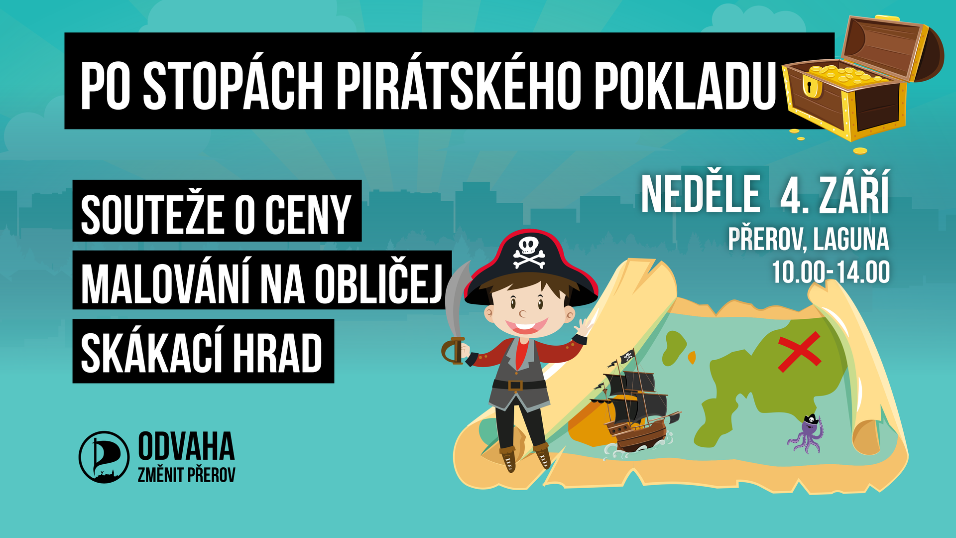 Kde?📍 Start pátračky bude na začátku Laguny u skate parku, náš pirátský stánek nemůžete minout.